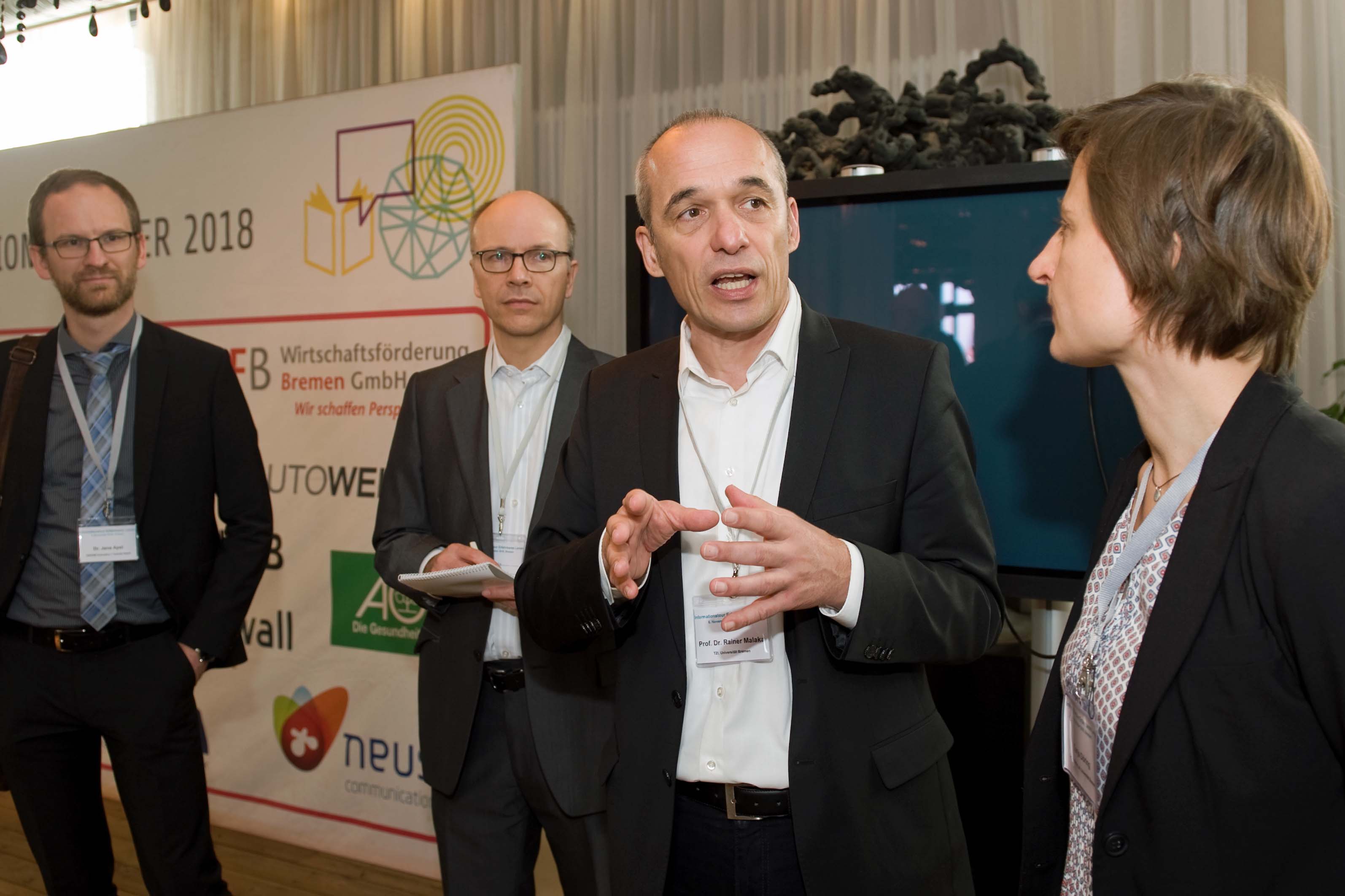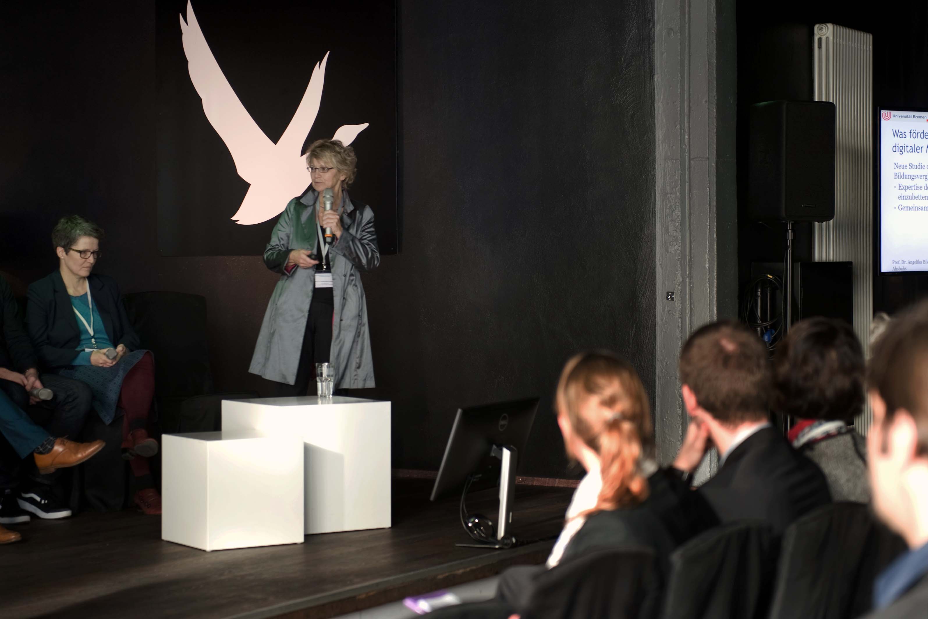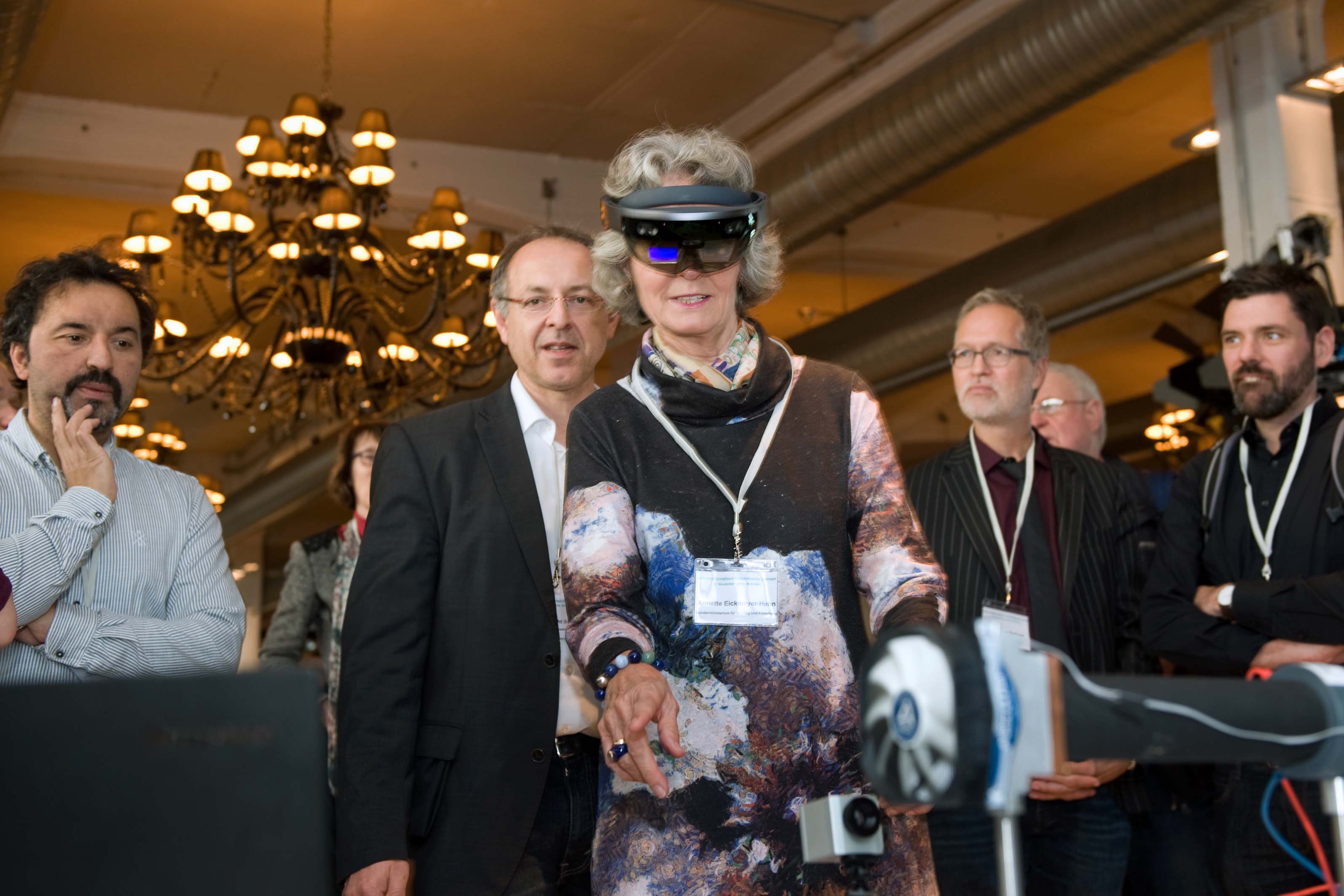Am 6. November hießen wir Frau Eickmeyer-Hehn vom BMBF, das Team der VDI/VDE und die Projekte der Förderlinie in Bremen im Hudson Eventloft willkommen. In einem gemeinsamen, zweiteiligen Event mit i2b konnten nun in Bremen interessierte Schulklassen, Fachpublikum und Bürger*innen die beeindruckenden Ergebnisse der Forschungsprojekte anfassen und ausprobieren. Außerdem konnten die Schulklassen in Kollaboration mit einer professionellen Zeichnerin ihre Zukunftsvisionen von Schule zeichnen lassen. Parallel dazu gab es eine Podiumsdiskussion zum Thema „Digitalisierung und Schule“. Am Abend wurde dann in Zusammenarbeit im dem Netzwerk i2b der Hauptmerk auf die Wirtschaft gelegt und zahlreiche Interessierte aus der lokalen Wirtschaft folgten einer spannenden Einführungsvortrag von Prof. Dr. Malaka und einer Podiumsdiskussion zum Thema „Technologie für Aus- und Weiterbildung“.