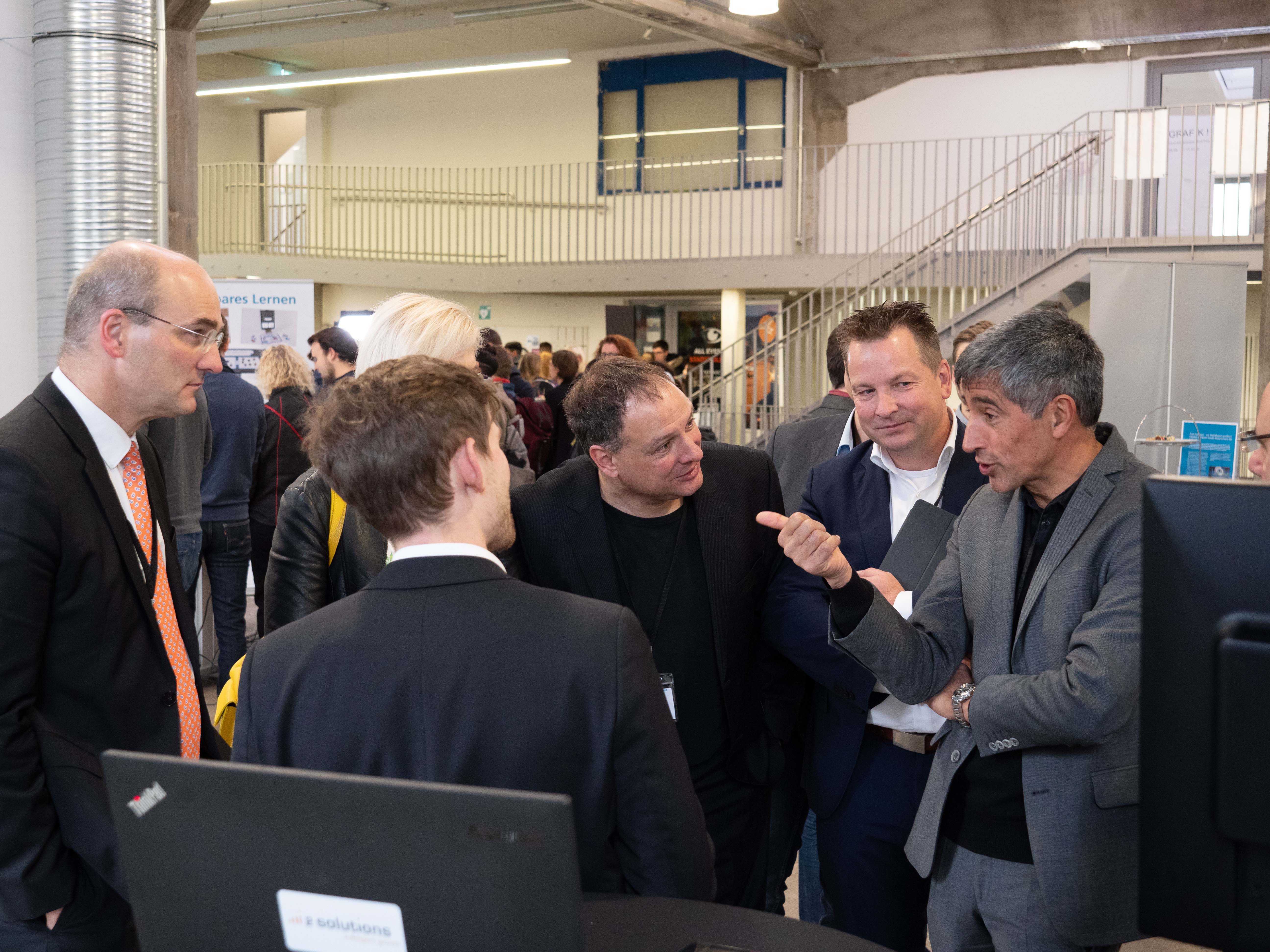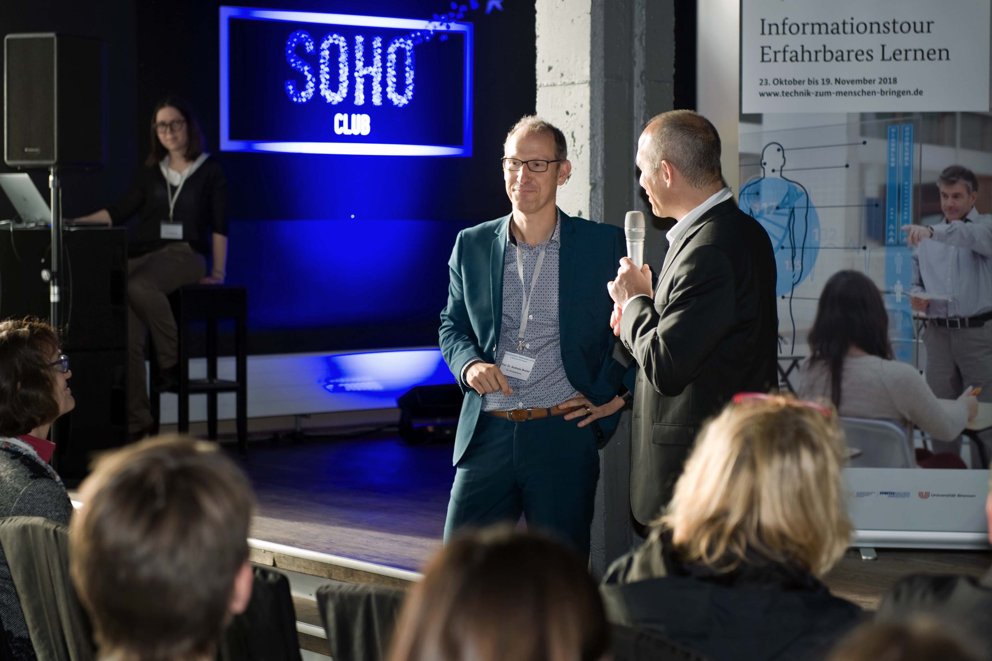 Den Abschluss der Deutschlandtour bildete Aachen am 19. November. In einem alten Straßenbahndepot wurden die Demonstratoren ein letztes MAL zusammen unter dem Titel Informationstour „Erfahrbares Lernen“ 2018 ausgestellt. Zahlreiche Gäste und Schulklassen explorierten die Demonstratoren und diskutierten mit den Ausstellen. Ranga Yogeshwar, der für einen Vortrag eingeladen worden war, nahm sich auch viel Zeit und bekundete aufrichtiges Interesse an jedem der vier Hauptdemonstratoren. Er disktutierte mit uns über die Vor- und Nachteile unserer beiden vorgestellten Prototypen.