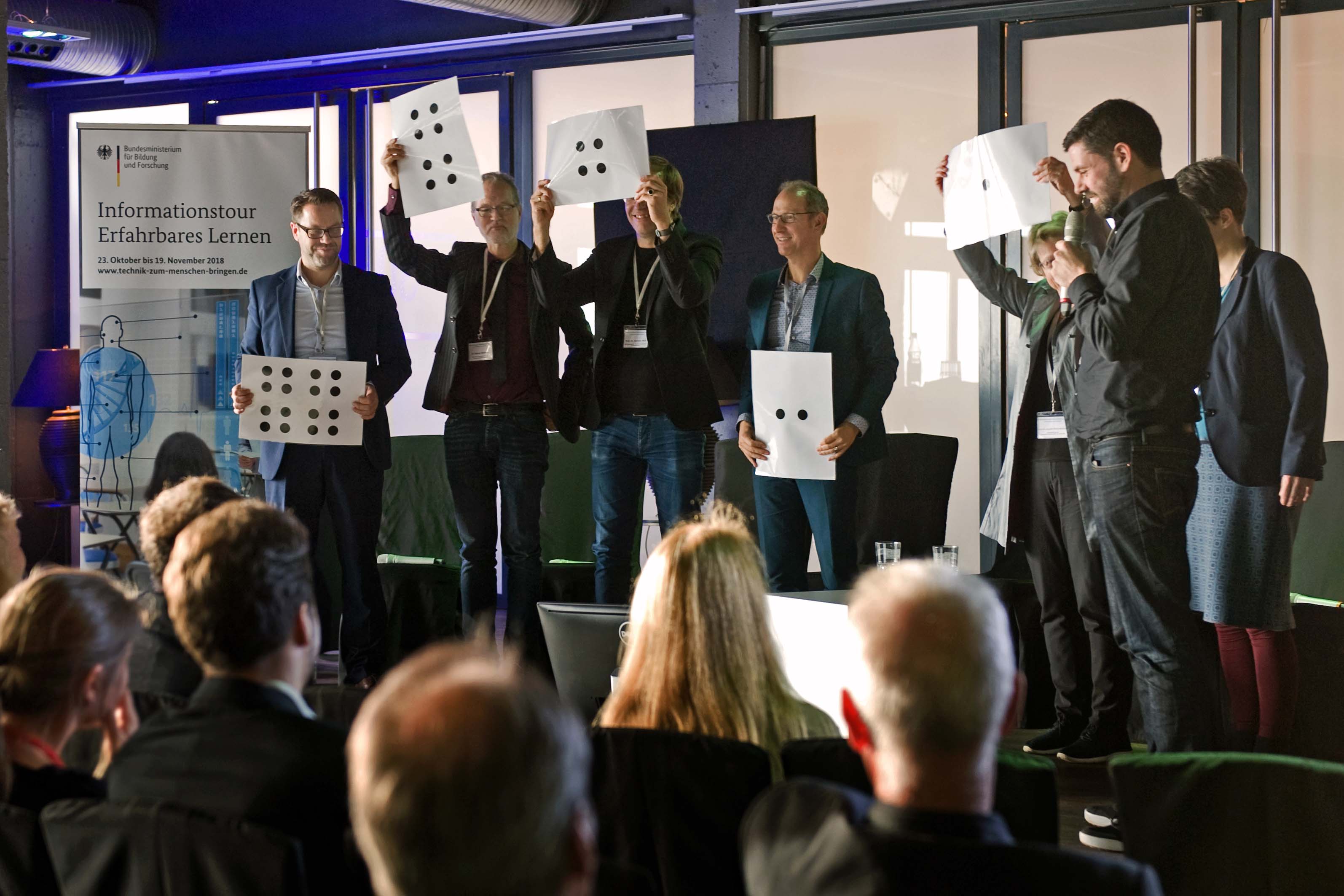 Die Informationstour „Erfahrbares Lernen“ des BMBF hatte ihren Auftrakt am 23. Oktober in den Design Offices Arnulfpark – NOVE in München. Zusammen mit den anderen drei Kernprojekten Kobelu, SurME, TABULA stellten wir unser MAL Projekt einem interessierten Publikum vor. Darüber hinaus wurden noch andere Projekte der Förderlinie gezeigt. Zwischendrin wurde die Thematik des Erfahrbaren Lernens durch Podiumsdiskussionen beleuchtet, an den u.a. auch Dr. Tanja Döring von unserem Projekt teilnahm.